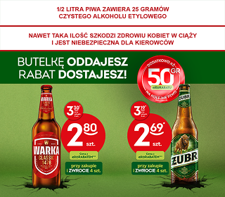 - Piwo, które zostało zakupione nie bierze udziału w akcji (nie jest w butelce zwrotnej).