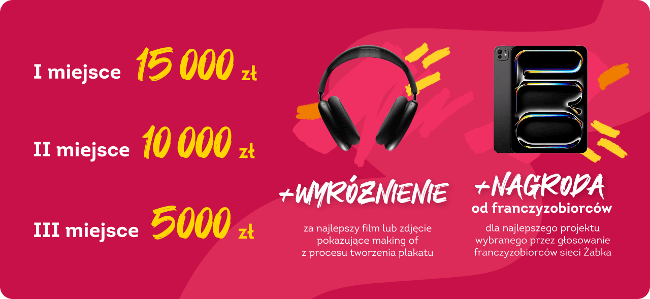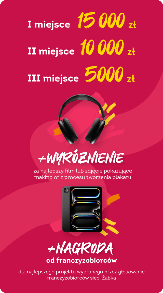 Udział w naszym konkursie to dla Ciebie szansa na rozwinięcie swoich umiejętności oraz stworzenie komercyjnego projektu dla rozpoznawalnej marki. Dajemy wyjątkową możliwość ekspozycji zwycięskiego plakatu w największej „galerii sztuki” – czyli w ponad 11 tysiącach naszych sklepów w całej Polsce! Konkurs będzie szeroko promowany w mediach ogólnopolskich, a dla zwycięzców przygotowaliśmy wartościowe nagrody, które dodatkowo docenią talent i zaangażowanie.