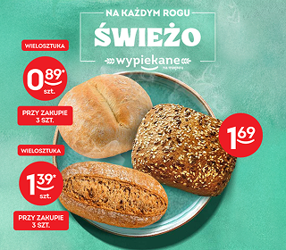 Wpadnij po świeże, ciepłe, przyjemnie chrupiące bułki i bagietki. Postaw na ulubiony smak lub odkrywaj nowe!