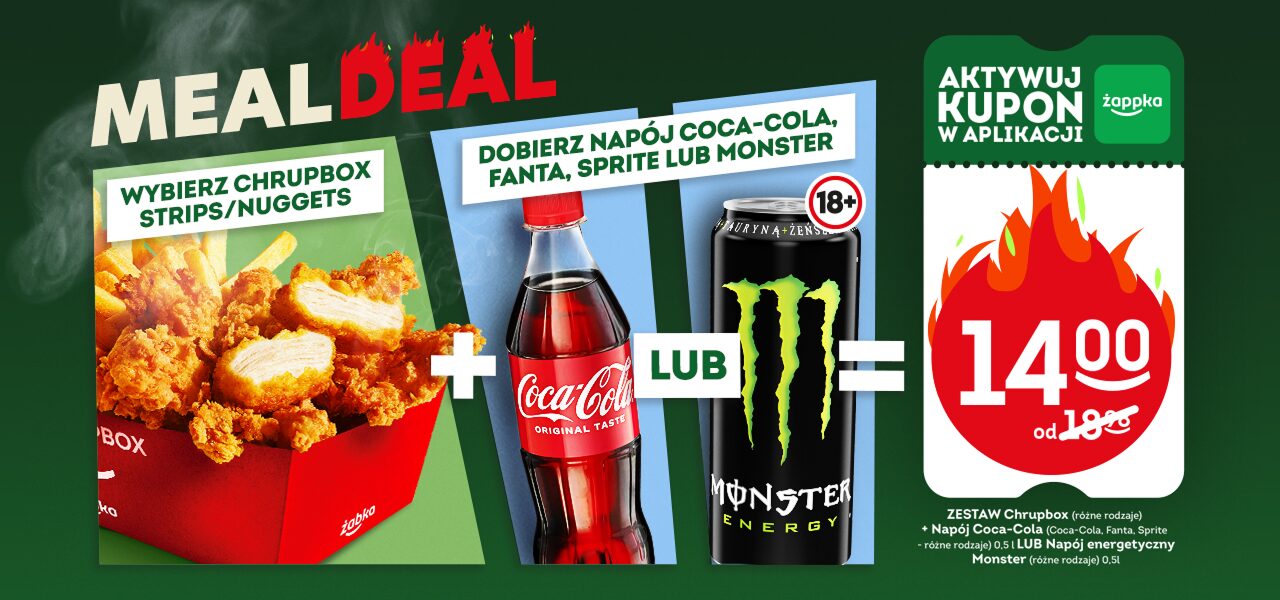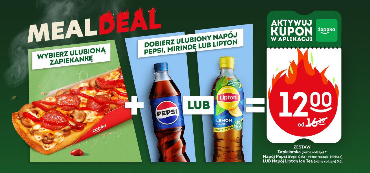 Poznaj produkty z oferty Meal Deal i ciesz się ulubioną przekąską i napojem w super cenie. Masz to w Żabce!
